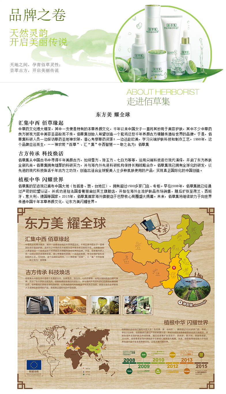 集中西 佰草缘起 中草药文化博大精深,其中一支便是特有的本草养颜文化,千年以来中国女子一直将其妙用于美容护肤。佰草集创始人希望创造一个能将千年养颜古方精髓传递给世界的